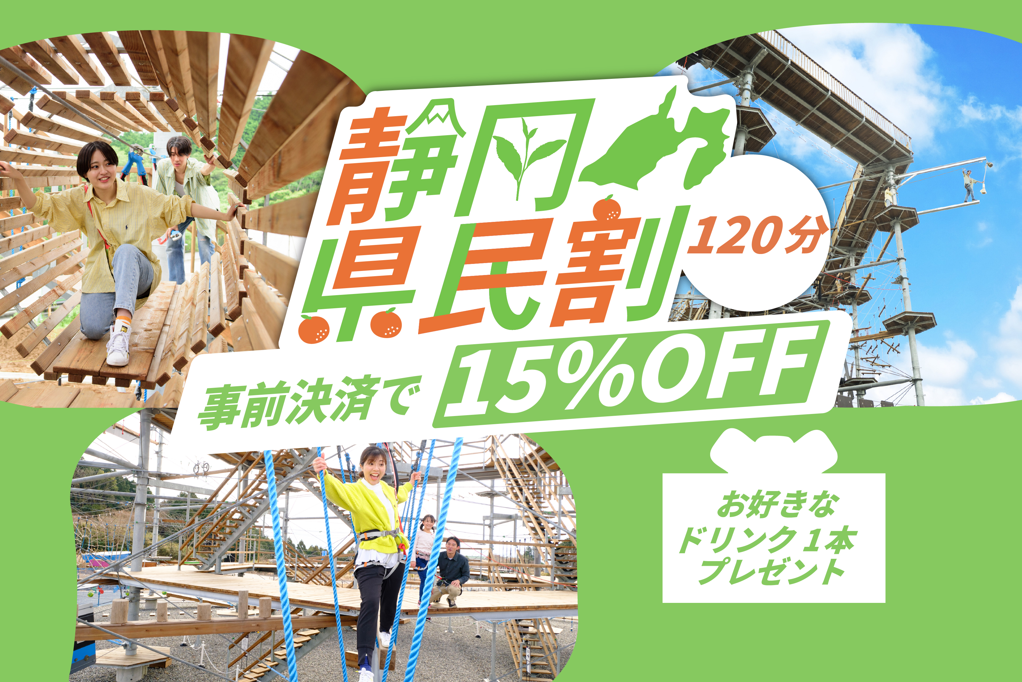 ★静岡県民割引★【事前決済専用 120分・アスレチックコース】