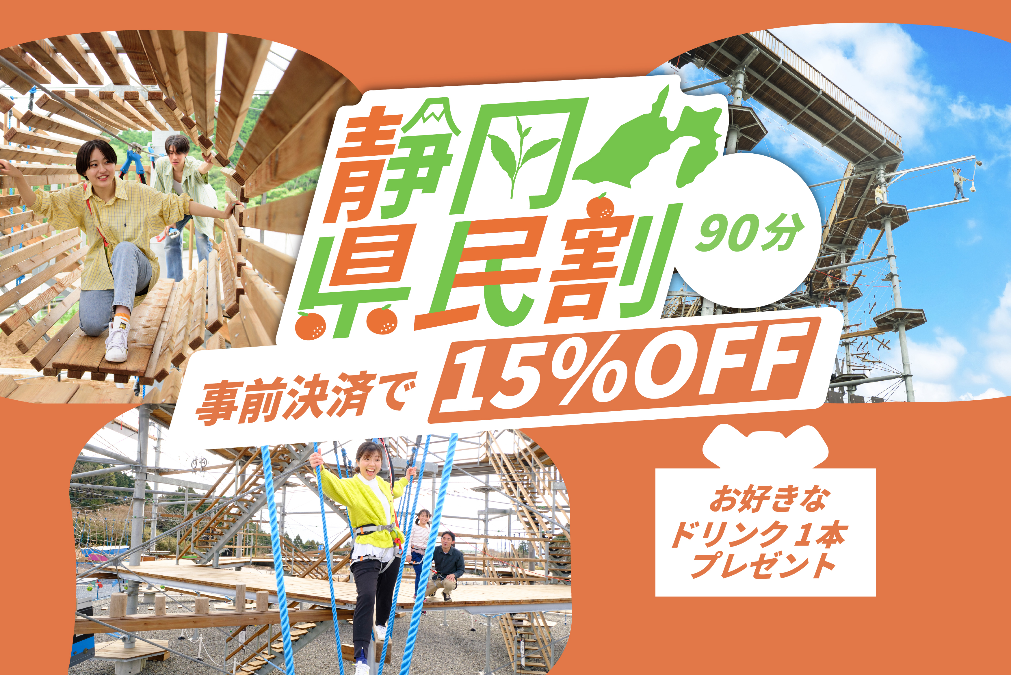 ★静岡県民割引★【事前決済専用 90分・アスレチックコース】